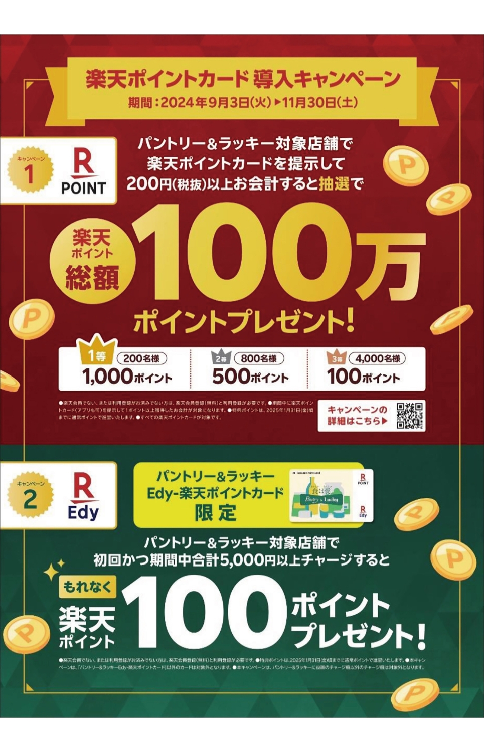 楽天ポイントカードでチェーン店の飲食店で10万ポイント山分け中。~9 30。節約速報。