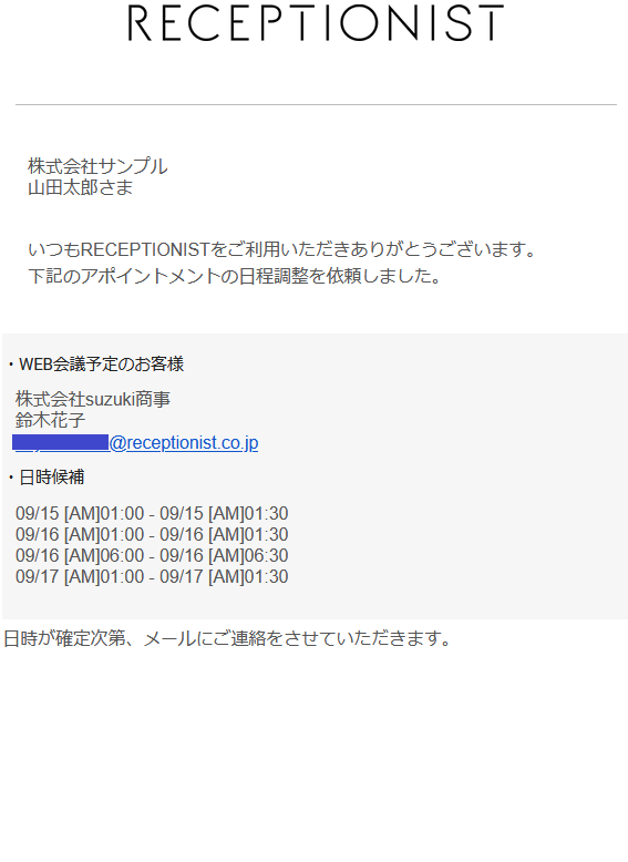 調整アポ Microsoft TeamsWEB会議の日程調整を行うヘルプセンタークラウド受付システムRECEPTIONIST。