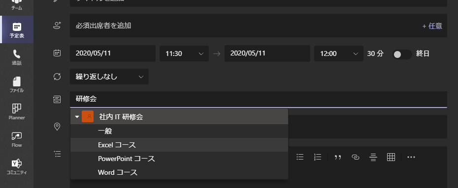 Microsoft Teams の会議予定でチャネルを指定した場合にチームメンバー全員に会議出席依頼を送りたいidea.toString;。