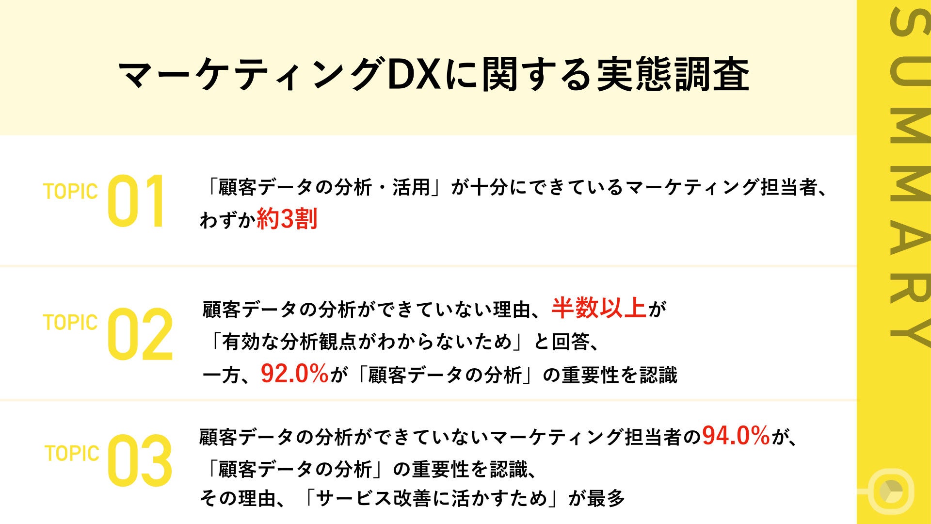 サブスク企業、マーケティングDXの実態は? 「顧客データの分析」が「十分にできている」は、28.3% 一方、分析のできていないマーケティング 担当者は92%が分析の重要性を認識株式会社Macbee Planetのプレスリリース。