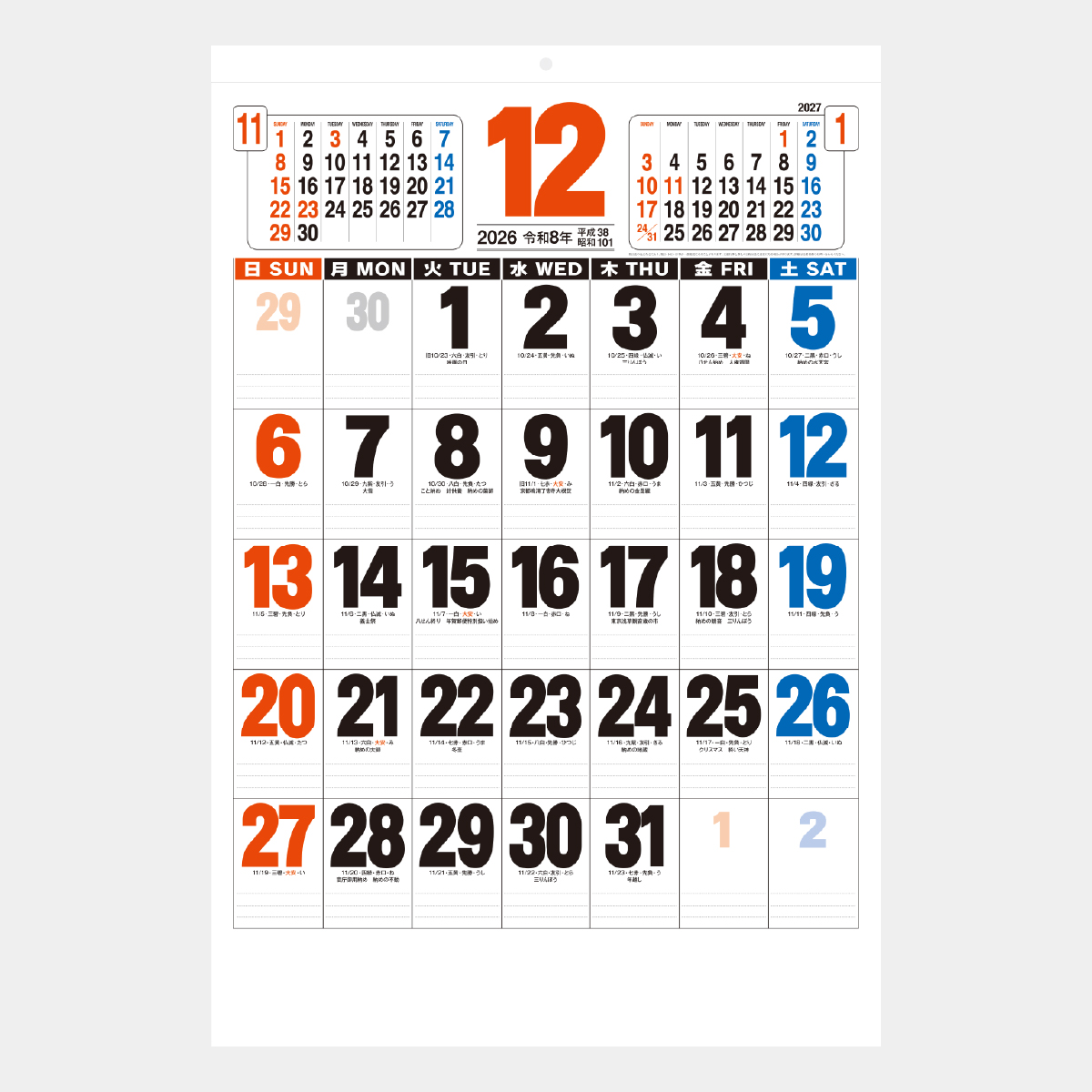 NB-186 3色ジャンボ文字 前後月 2026年版の名入れカレンダーを格安で販売 - 名入れカレンダー印刷.com。