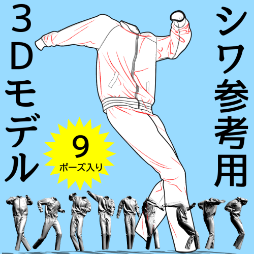 スカジャン9ポーズ入りシワ参考用3Dモデル - CLIP STUDIO ASSETS。