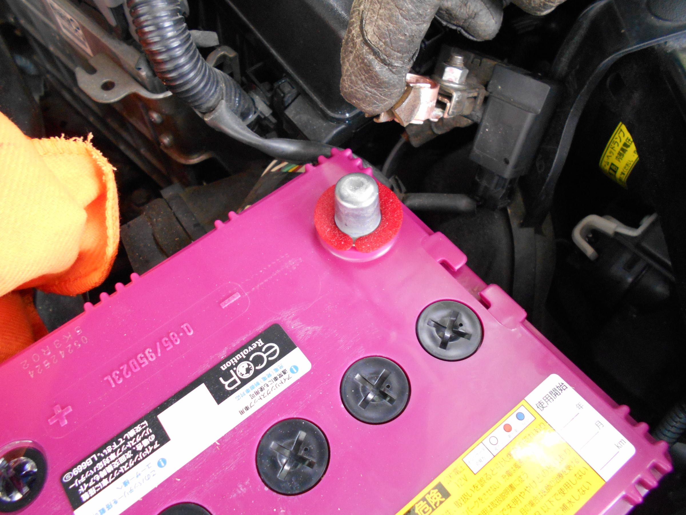 12Vバッテリー端子の腐食対策粉吹き対策ホンダ フィット3 ハイブリッド by kazoo zz - みんカラ。