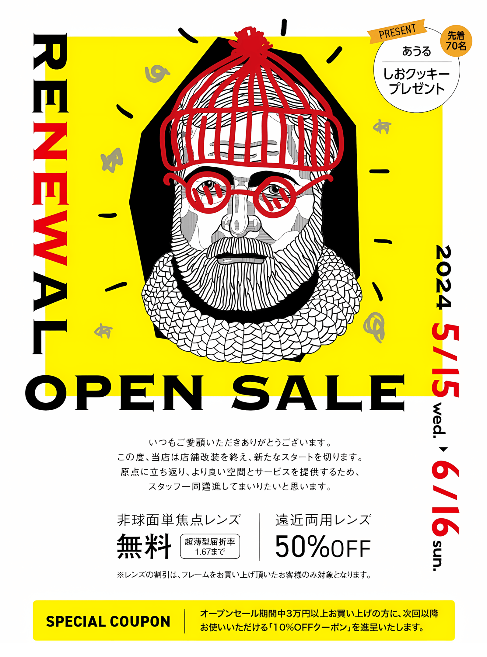 リニューアルオープンセールのお知らせINFORMATIONMUSEUM Eye works FACTORY - 山形県酒田市の眼鏡店。