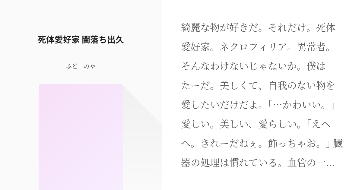 1 死体愛好家 ネクロフィリア の未熟児ネクロフィリアの未熟児 - 紅絹 もみ の木の小説シリー - pixiv。