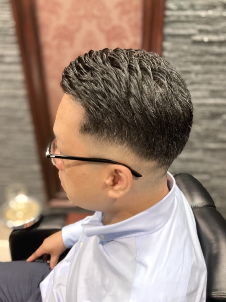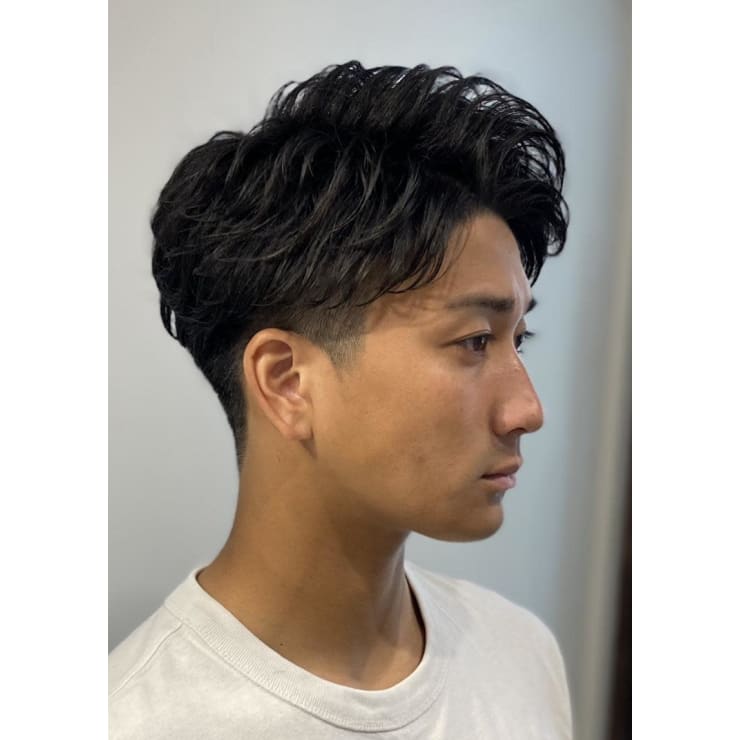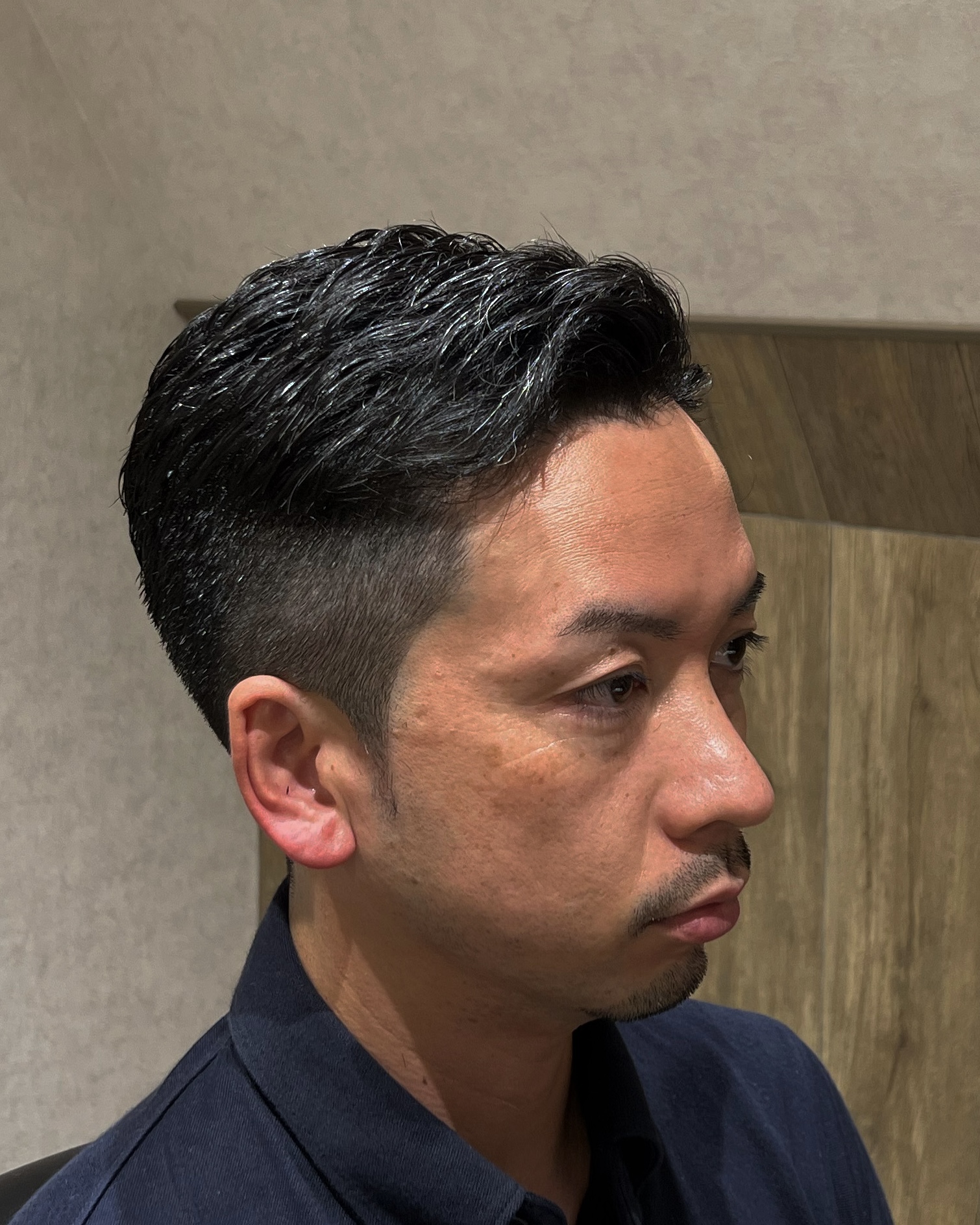 ヘアカット ×パーマゆるめのパーマで作る大人の7:3ツーブロック大人のビジネスマンのための“男性専用”美容室ブラックビズ。
