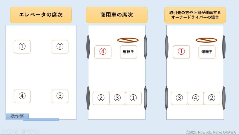 席次のビジネスマナー 乗り物編 これで安心!イラスト6例付き – フォーシーズインターナショナル。