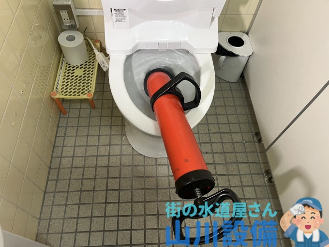 1F男女共用のトイレ1台が詰まっている 恐らくナプキンの詰まり?街の水道屋さん山川設備。