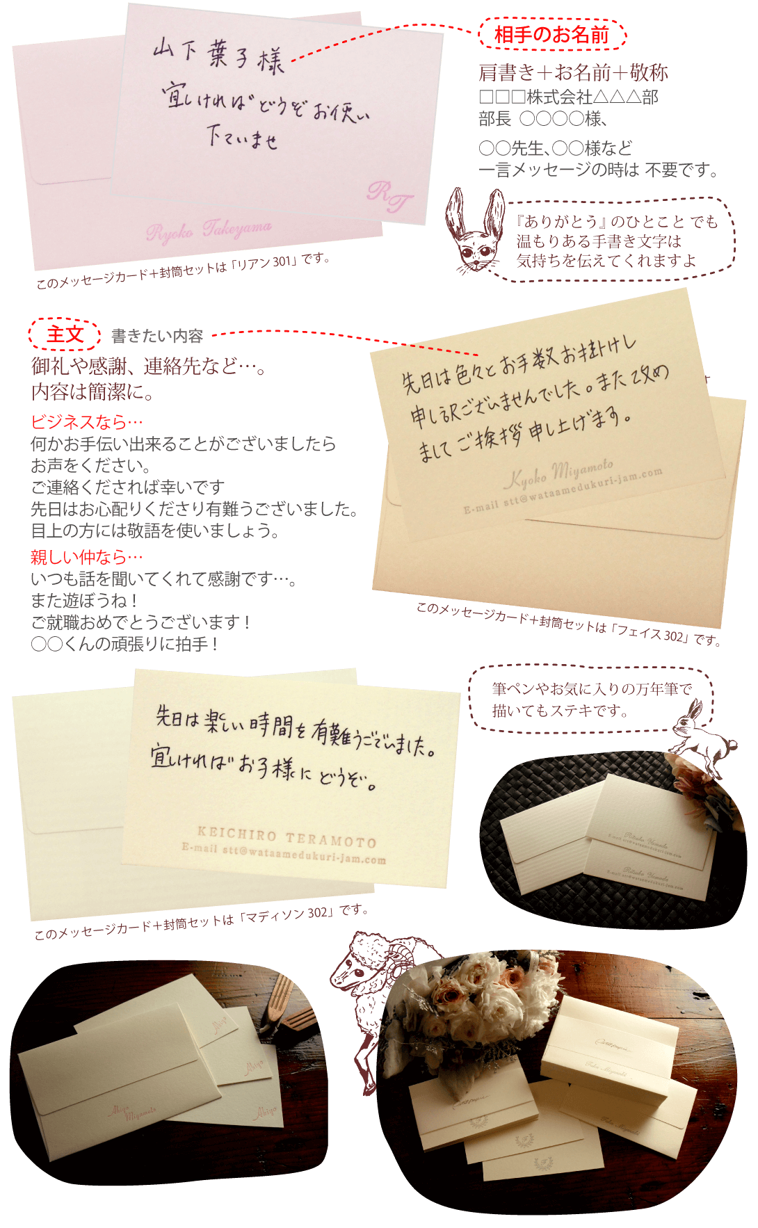 メッセージカード+封筒セットの書き方パピレッタ・お名前入りオーダーメイドレターセット。