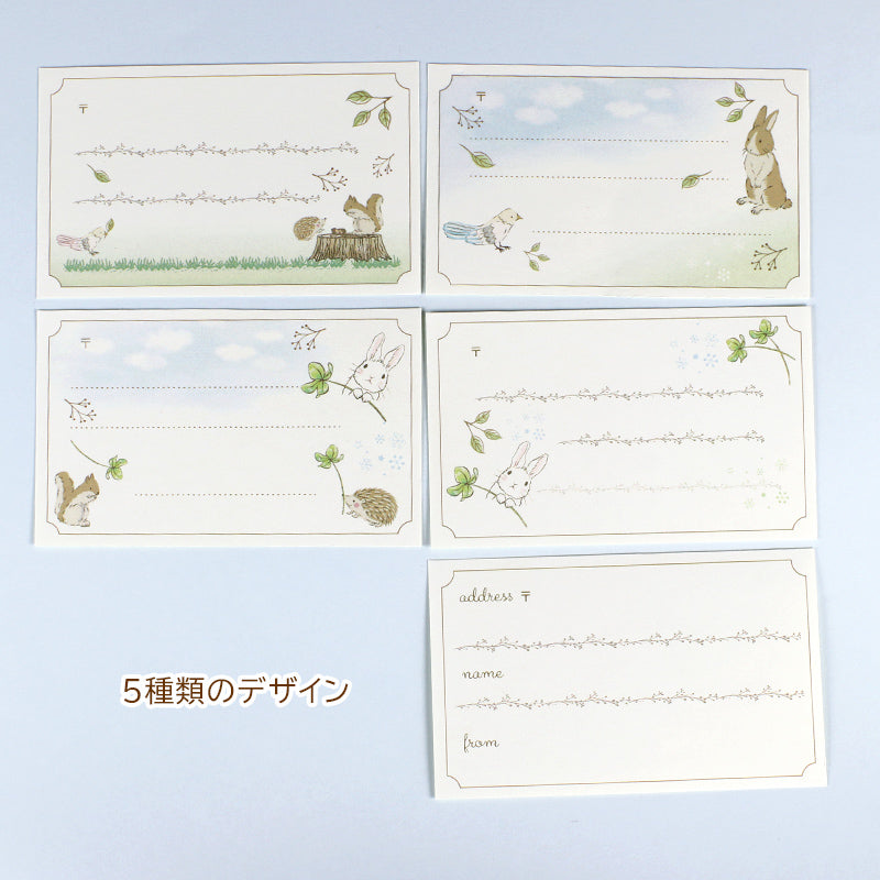 イラスト入り宛名シール ラベル:お手紙に封筒に うさぎ アジサイ 紫陽花 ブルーベル スズラン森の風景 動物 – えくりゅの森 ecru forestHandmade & Stationery。