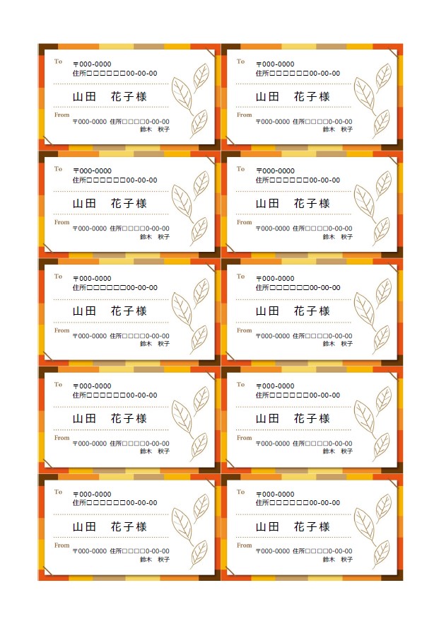A4・10枚宛名ラベル 葉っぱのイラストがかわいい&秋におすすめのテンプレート・ハガキ イラストボックス「プレミアム」テンプレート。