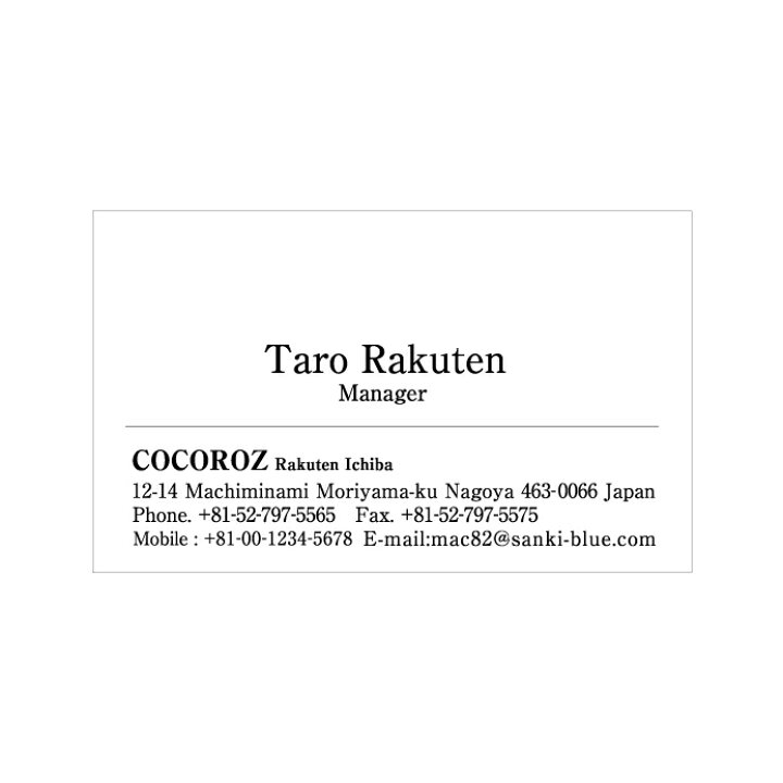 テキスト入稿名刺 ヨコ向き 両面カラー印刷 H8-01 英語表記。
