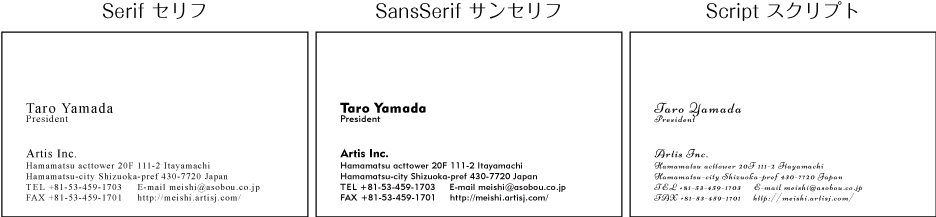 名刺のフォント 和文フォント,欧文フォントデザイン名刺.net。