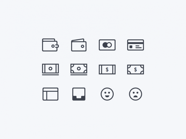 お財布、クレジットカードなどお金のアイコンアイコンクリップ。