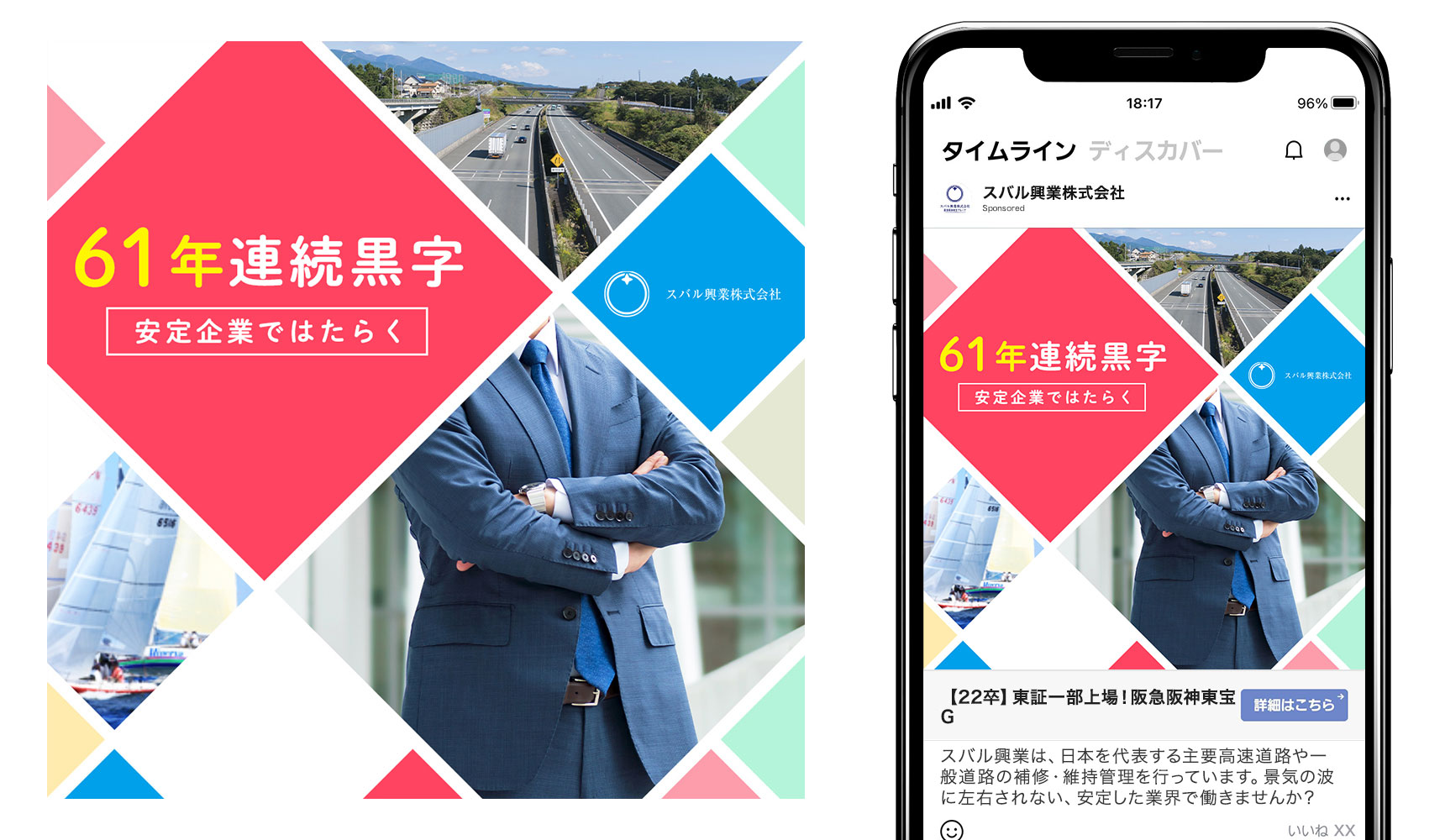 スバル興業株式会社様 クリエイティブ事例LINE広告用バナー制作新卒採用株式会社イオレ。