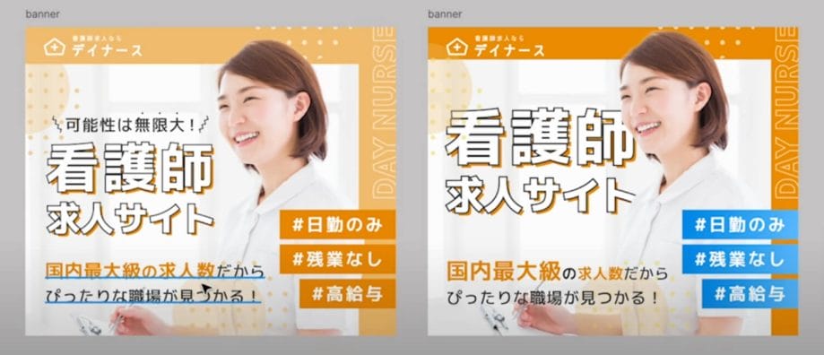 日研トータルソーシング株式会社 魅力的に感じる求人はどっち?のバナーデザインバナー広告デザインまとめBANNER GALLERY。