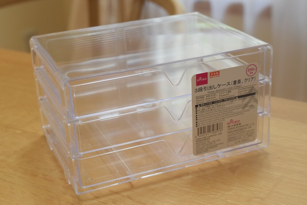 100均ダイソー「3段引き出しケース」の収納アイデア。使い方や活用法をブログレポート。