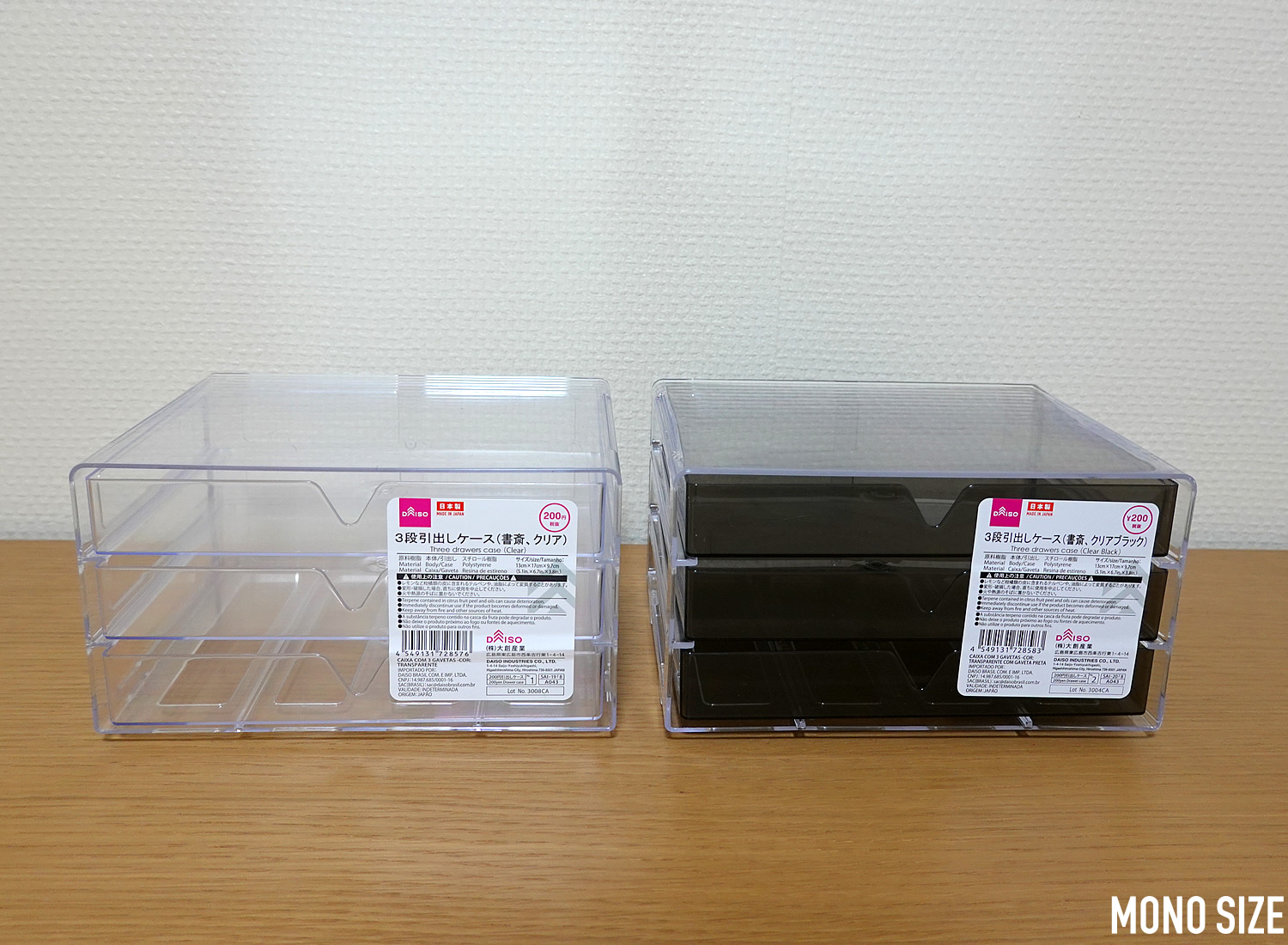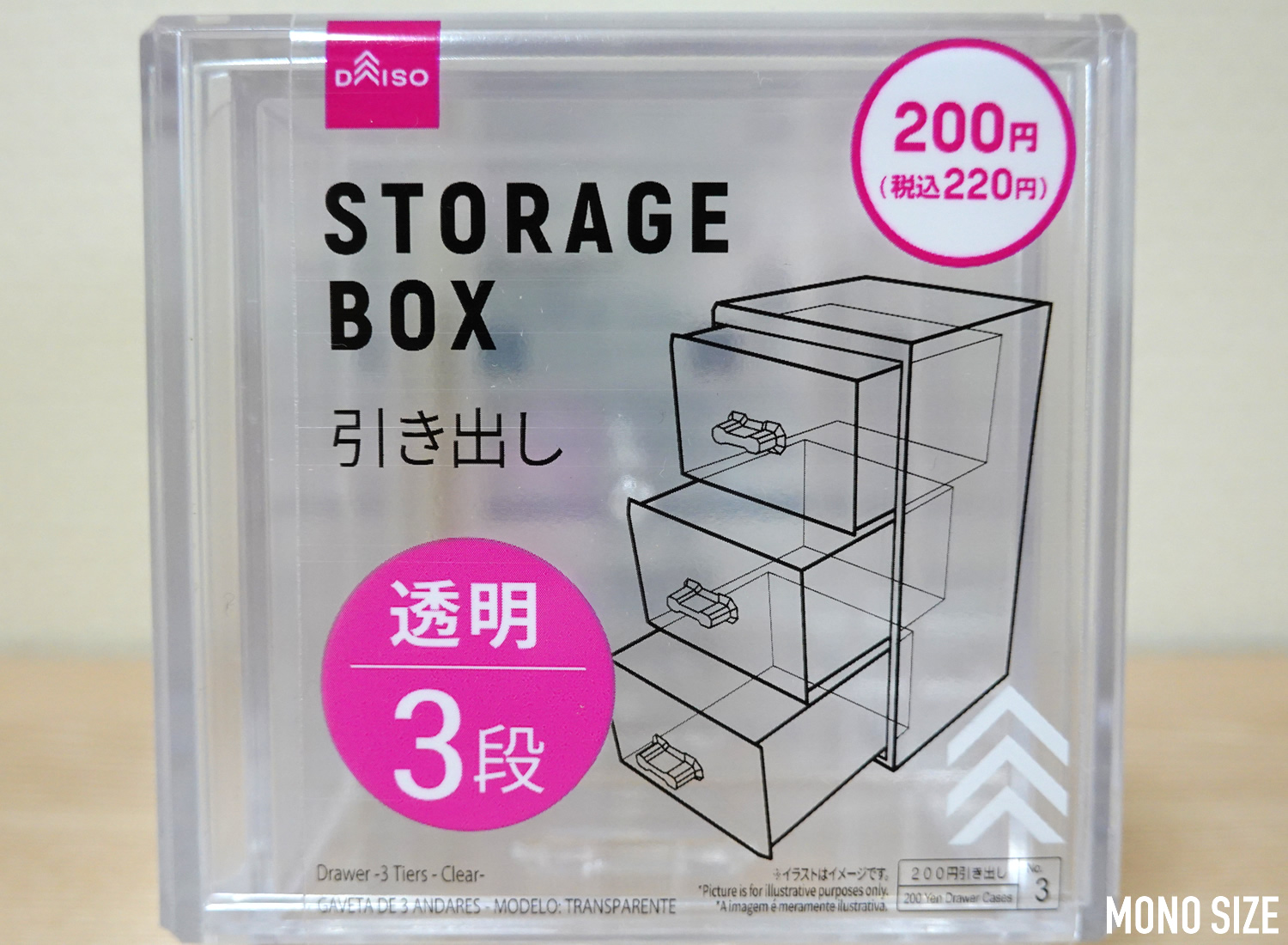 100均「3段引き出し 透明 」の商品情報とサイズ・収納例。ダイソーで販売 4549892006456。