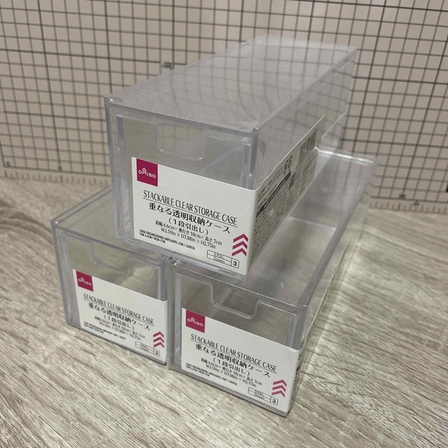 DAISO ダイソー 3段引き出し透明ケース 3個セット。