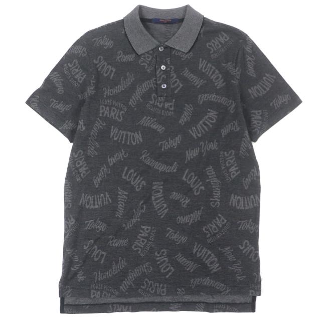 極美品▽LOUIS VUITTON ルイヴィトン コットン ロゴ総柄 ショートスリーブ 半袖ポロシャツ ブラック系 M イタリア製 正規品 メンズ 日本国内最高級ブランド販売店のブランド通販専門店メンズ服。