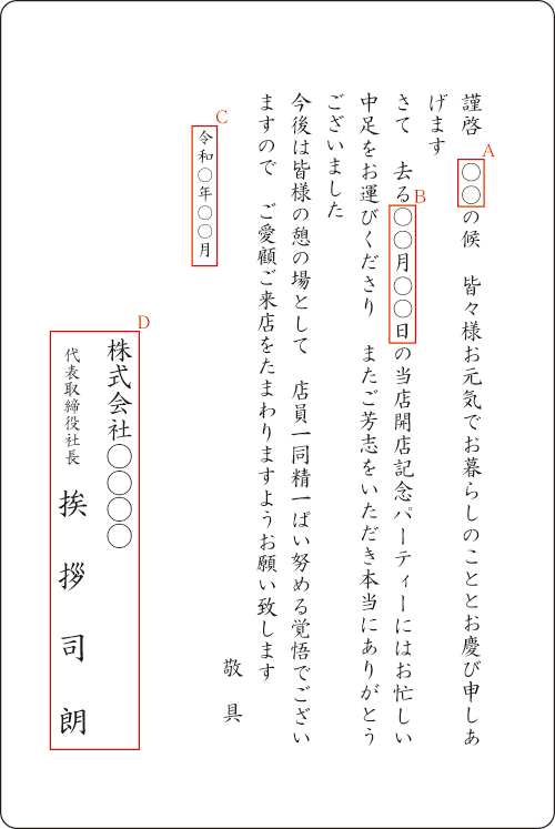 竣工・落成・完成祝賀会、周年記念式典などへの来会者へのお礼状文例集 - 良いあいさつ状.com。