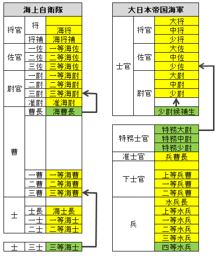 海上自衛隊・大日本帝国海軍階級対応表太平洋戦争史と心霊世界。