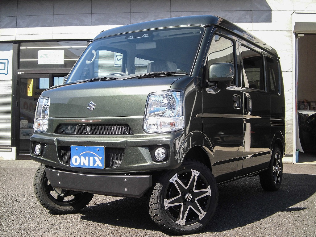 ケンオウオフロード エブリイワゴンコンプリートカスタム製作 リフトアップ施工 マッドタイヤ 魅せるショートバンパーフロントリヤ 県央自動車販売水戸で エブリイのカスタム製作販売グーネットピット。