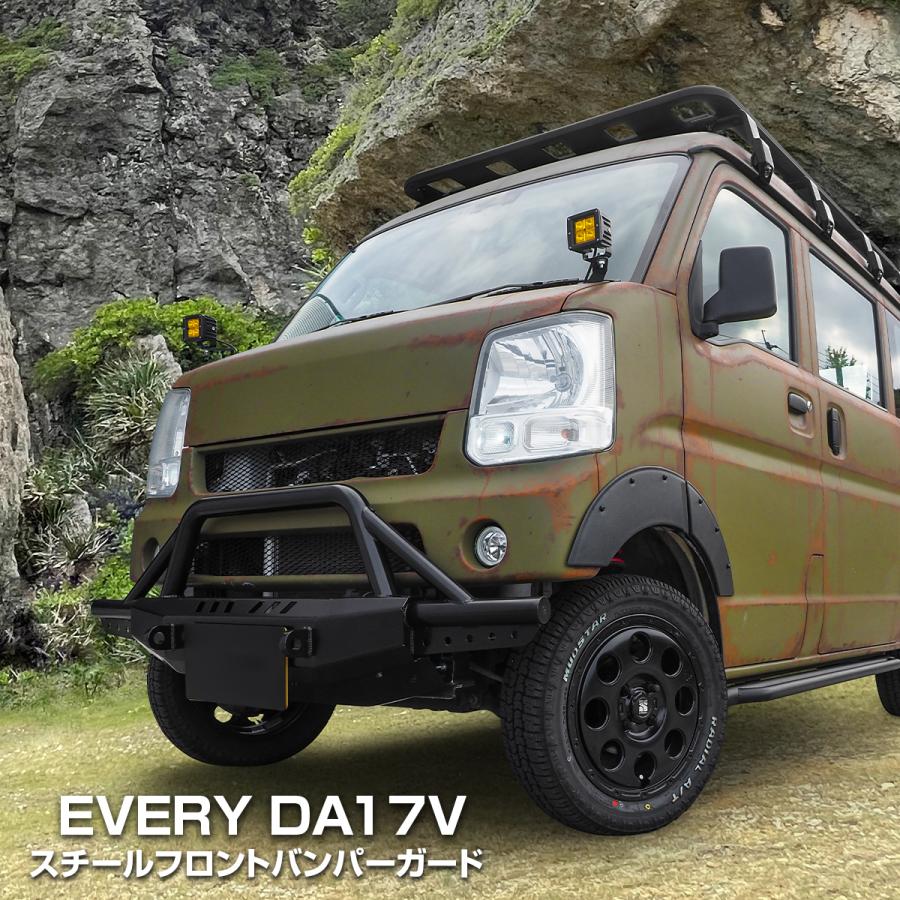 エブリィバン DA17V エブリィワゴン DA17W フロント バンパーガード グリルガード スチール製 バー カスタム パーツ 車用品 エアロ 外装。