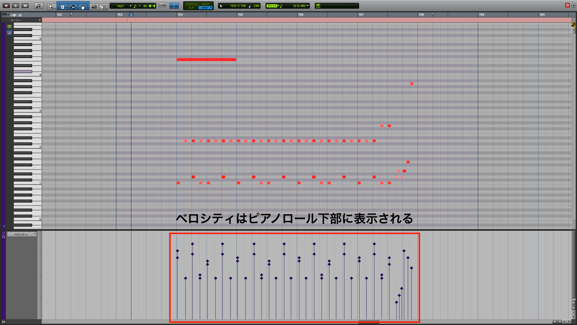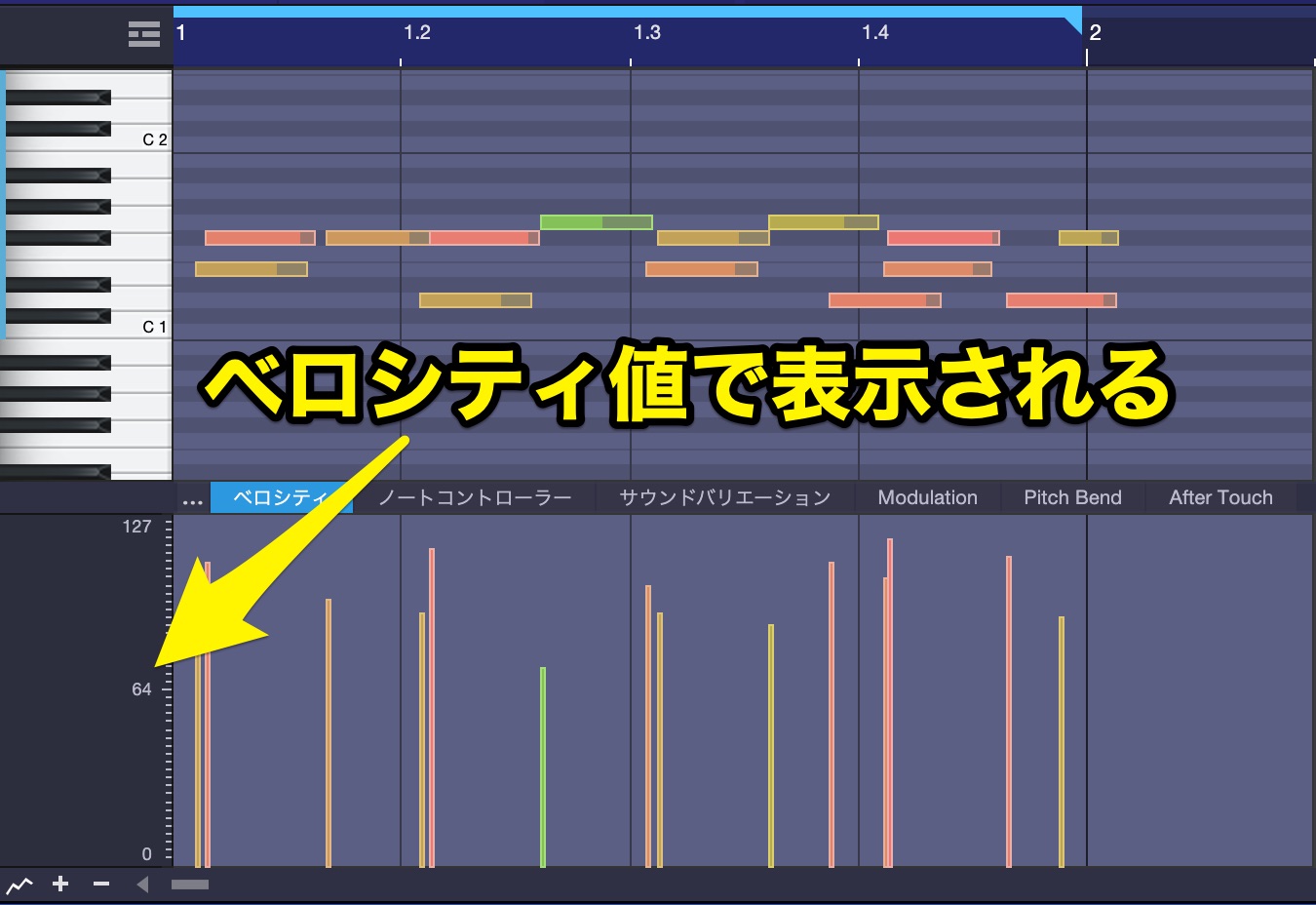 Mac用Logic Proのピアノロールエディタでベロシティを編集する - Apple サポート日本。