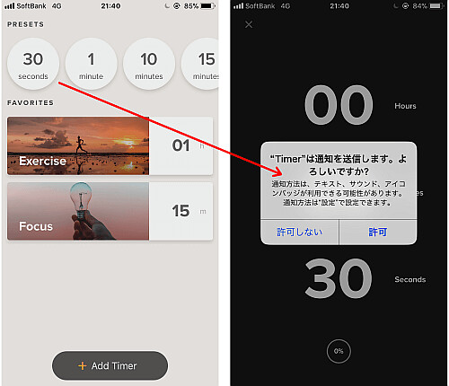 iPhone iPad Widget Timer ウィジェット・タイマー - iOSの通知センターに置いて使えるタイマーアプリKeaton.com。