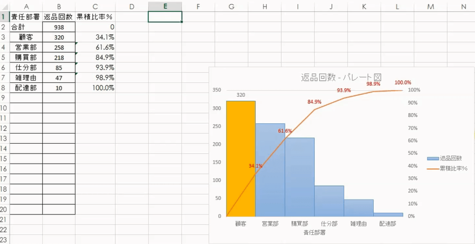 累積比率とは?パレート図の作り方やエクセルでの作成方法をしっかり解説。