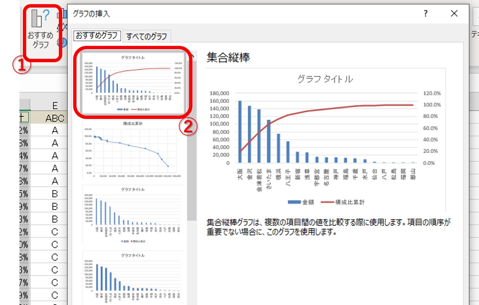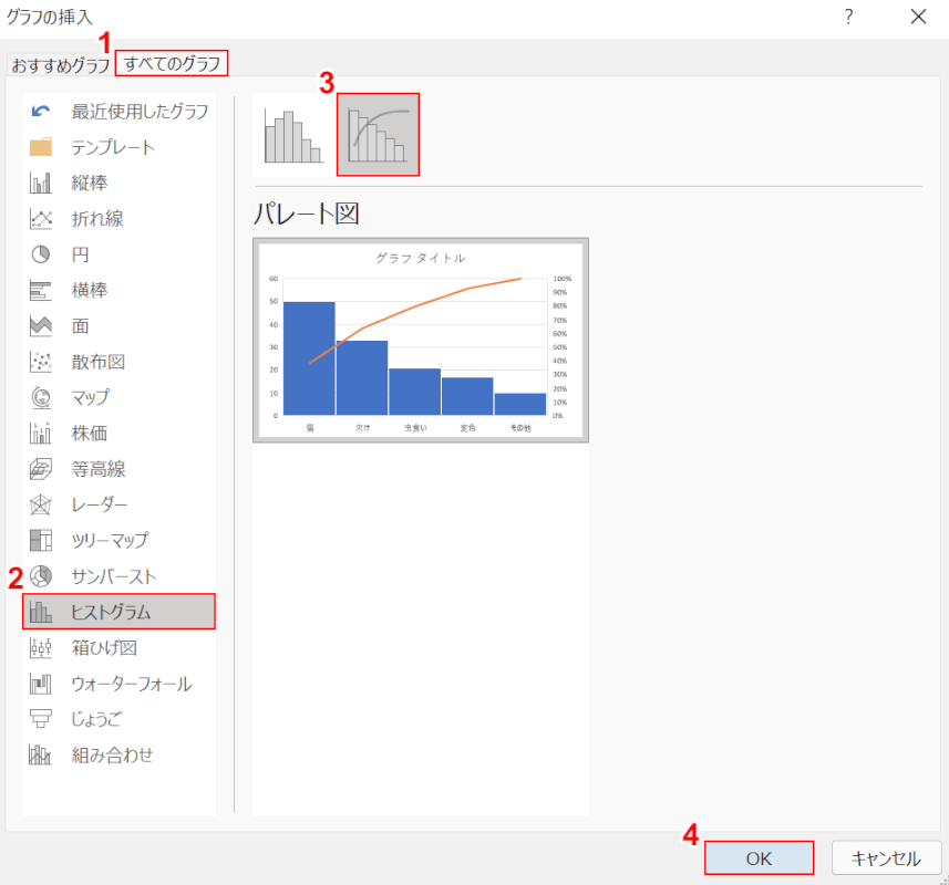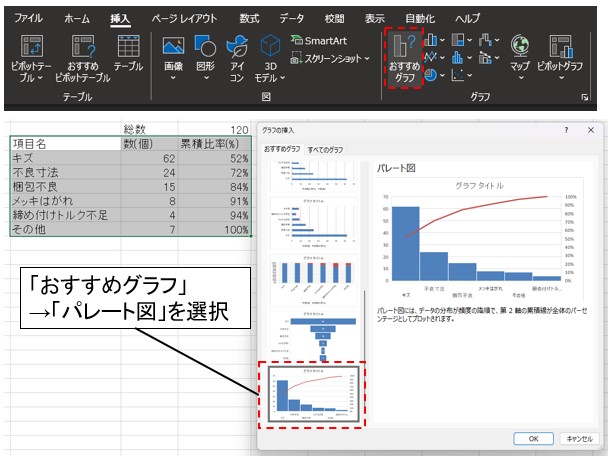 Excelでパレート図を作る Excel2016以降対応ExcelとAccessの学習室。