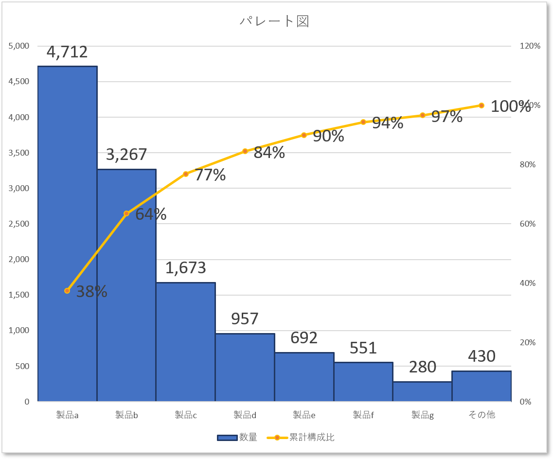 パレート図とは? エクセルでの作り方、読み方のコツを紹介 - QCとらのまき。
