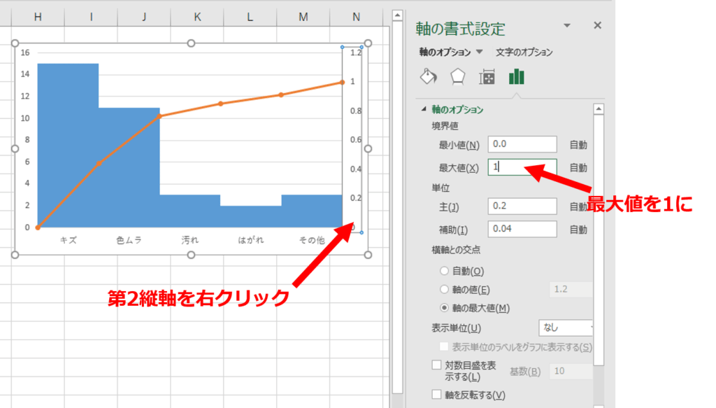 至急 パレート図を作っているのですが、何故か主軸と2軸がずれて- Yahoo!知恵袋。
