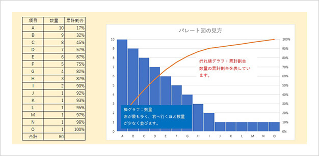 簡単 パレート図の作り方 エクセルで正しいパレート図を作る方法 ビジネスノート。