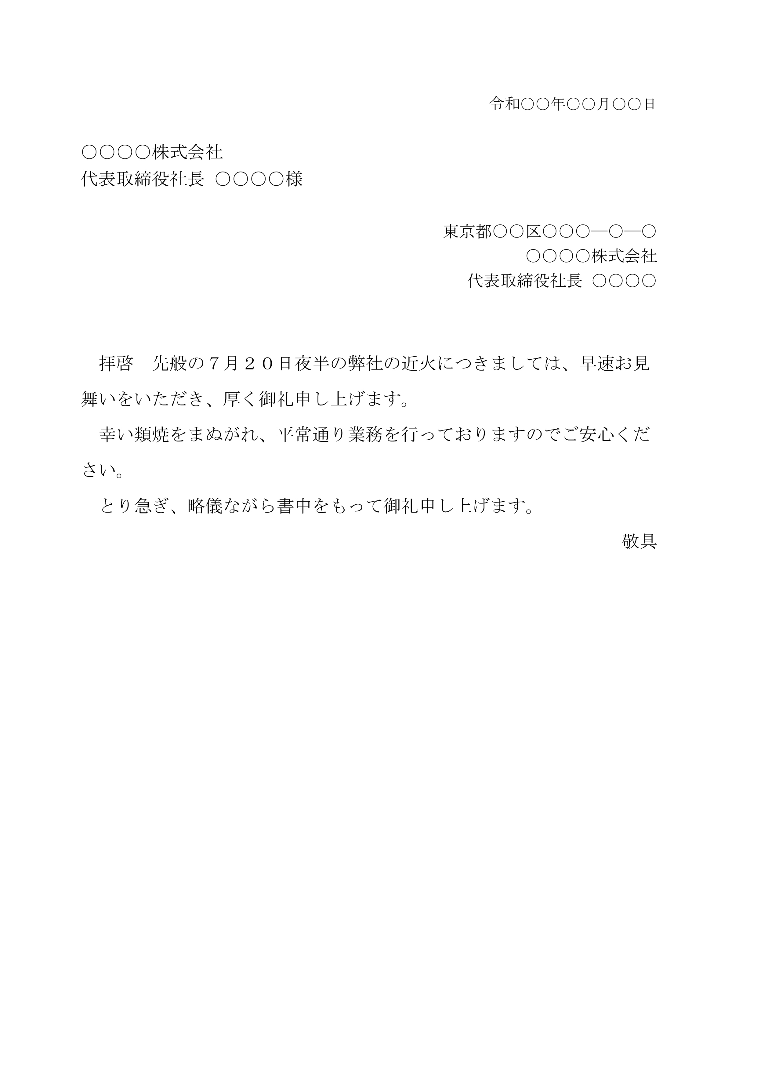 出火・近火お見舞い礼状文例集 - 良いあいさつ状.com。
