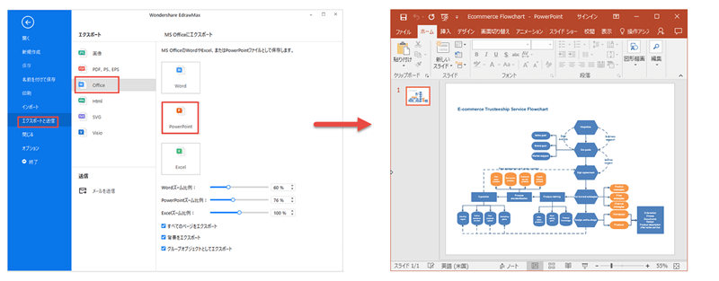 パワーポイント フローチャート テンプレート 無料PPTX 業務フロー図にそのままBizroute。