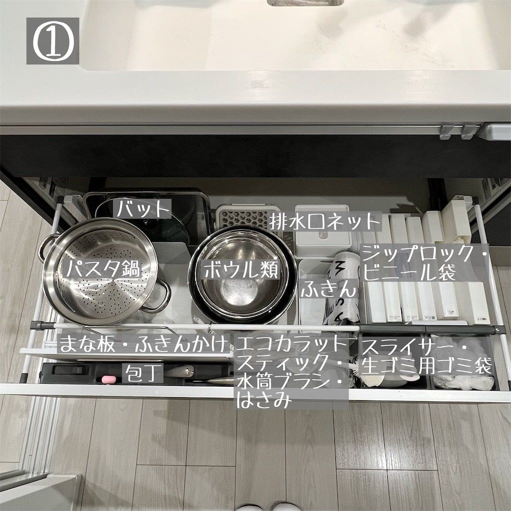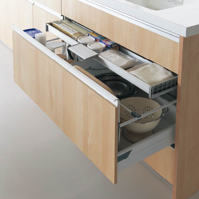 パナソニック トリプルワイドIH下の引き出し収納例!Smileの住まいるーと。
