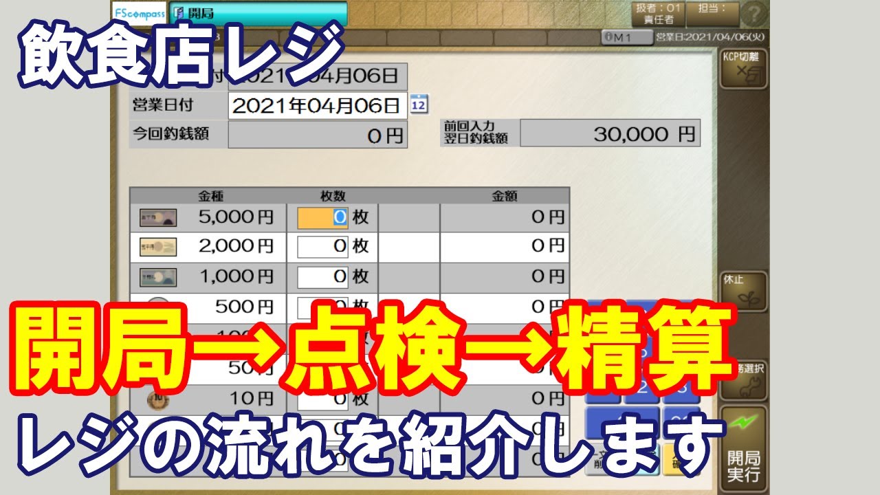 飲食店レジ開局→点検→精算の基本的な流れを詳しく紹介東芝テック製POSレジFScompass編。