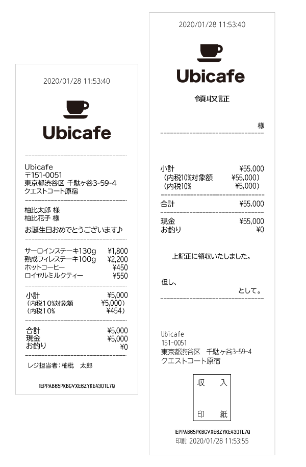 STORES レジ レシートに表示される項目一覧と見本画像 – STORES レジよくある質問。