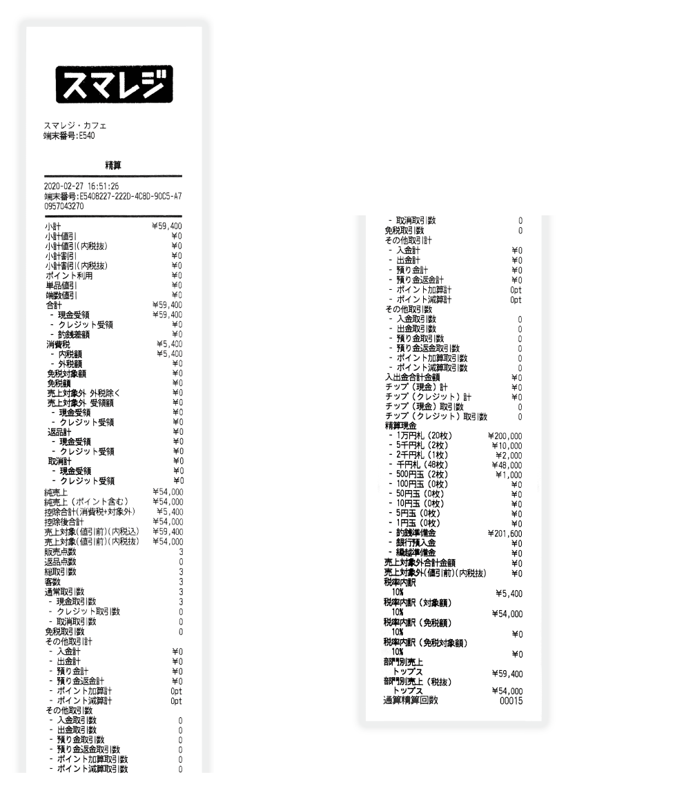 精算レシート 点検レシートに印字される項目を設定する 精算印刷– スマレジ・ヘルプ。