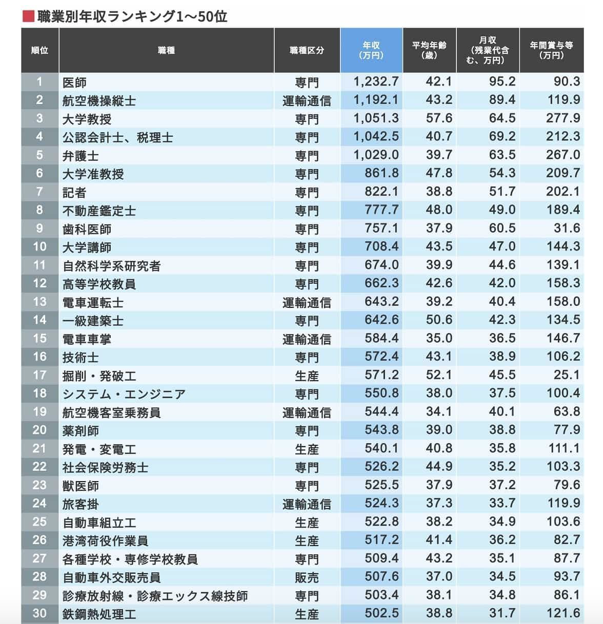 年収ランキング 2020年版建設業は何位にランクイン?アーキブック。