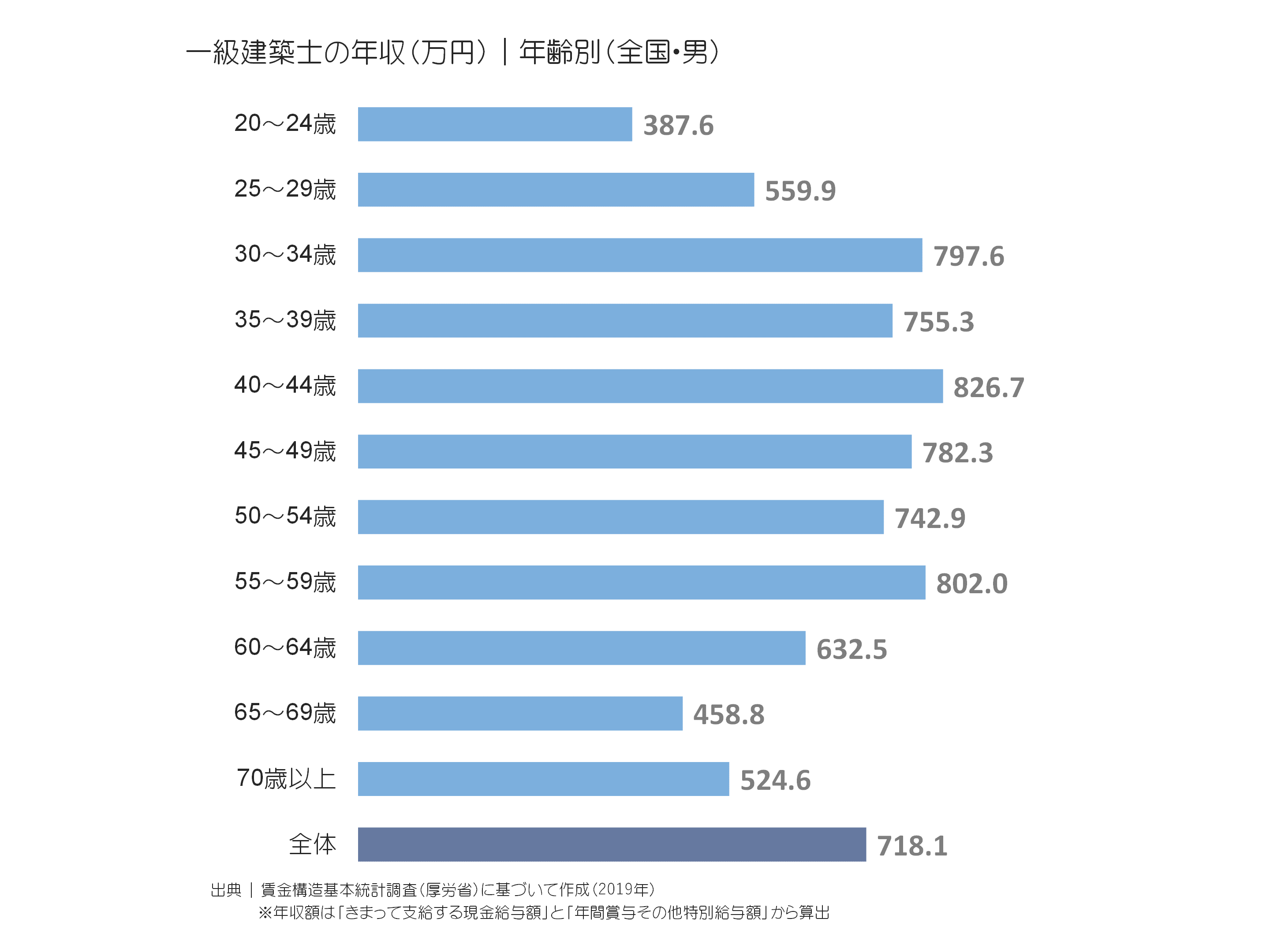 一級建築士の年収建設業の賃金 2020年版 アーキブック。