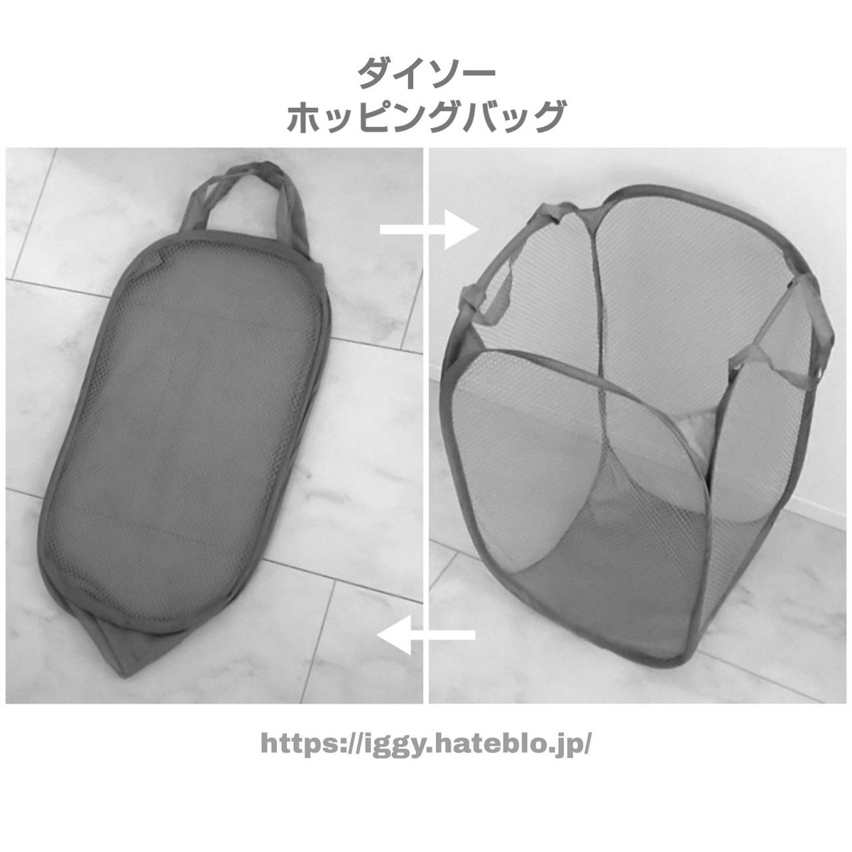 ダイソーの「ホッピングバッグ」折りたたんで収納できる!洗濯カゴに最適! - イギーとポル 福岡グルメ。