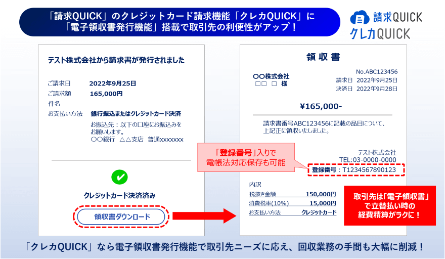 請求QUICK」のクレジットカード請求機能「クレカQUICK」に「電子領収書発行機能」を搭載!~BtoBクレカ決済の立替払い 精算ニーズに応え、取引先の利便性を向上~SBIビジネス・ソリューションズ株式会社。