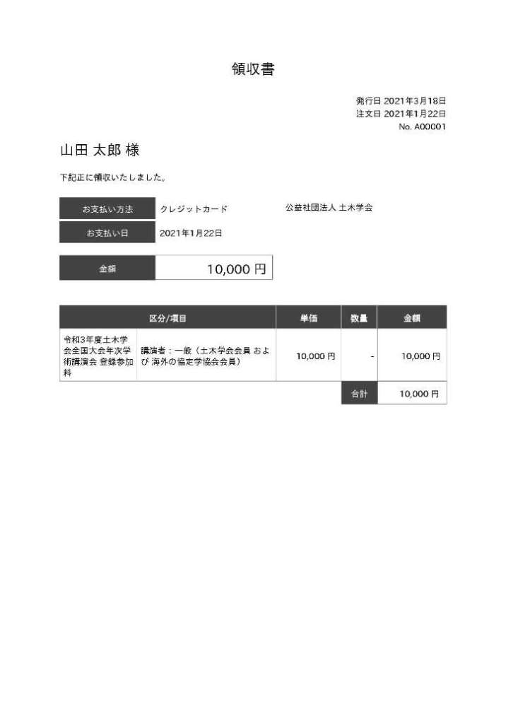 領収書記載の日付について クレジットカード決済の場合土木学会 全国大会委員会。
