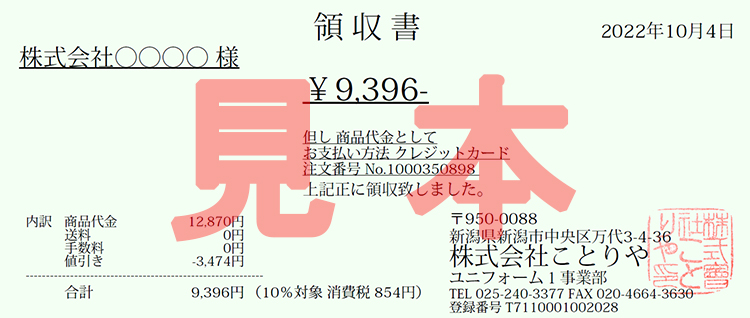 ユニフォーム1.COM Q&A クレジットカード決済をして、領収書を法人宛で商品に同封してもらうことは可能ですか。