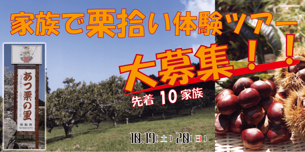 栗拾い体験ツアー 大募集! 家族で栗拾い体験を通して、厚保の里をもっと知ろう。 山口県美祢市地域とつながるプラットフォーム スマウトSMOUT。