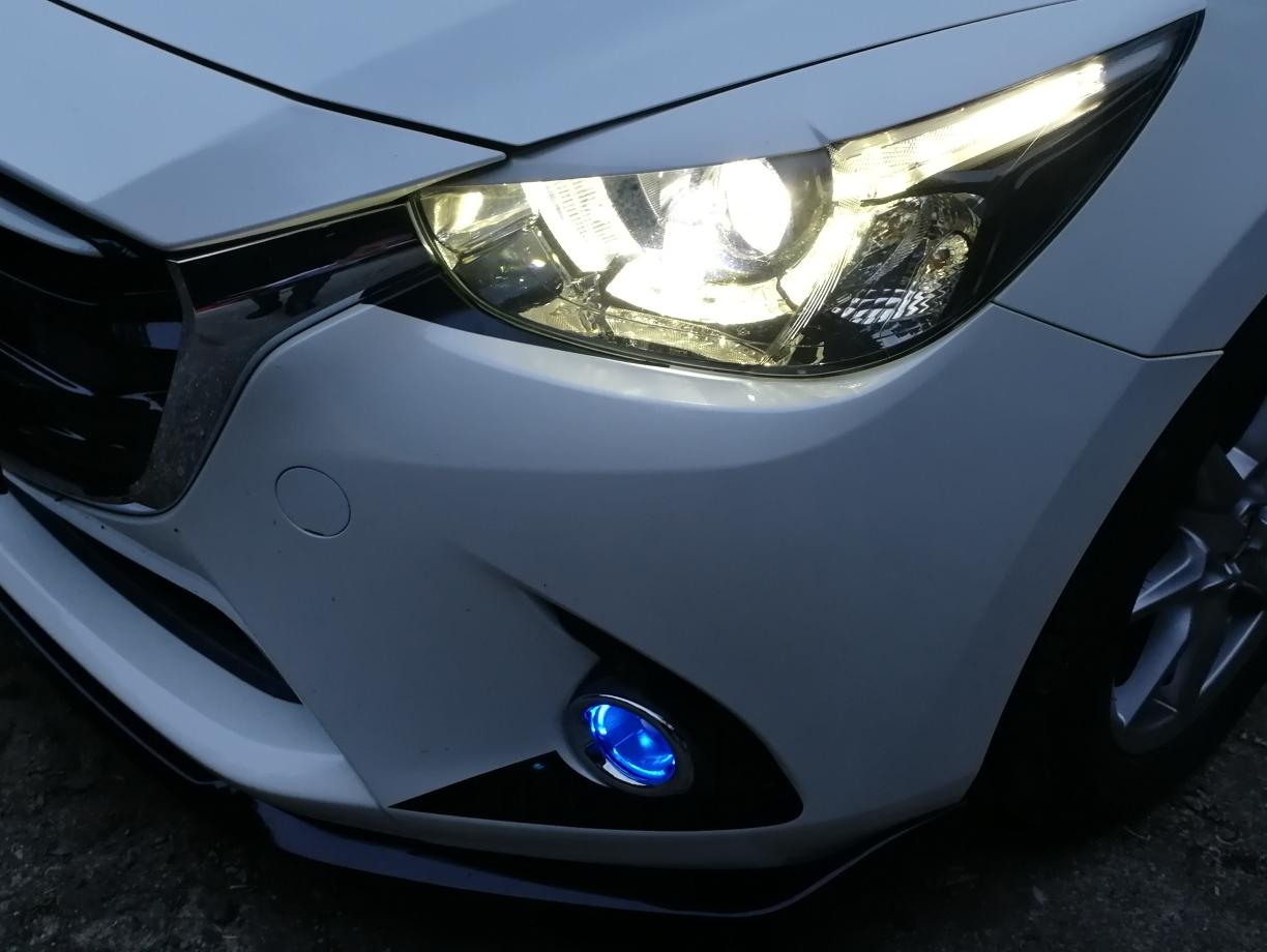 自作 ヘッドライトアンダーアイライン のパーツレビューデミオ GPたかみんカラ。