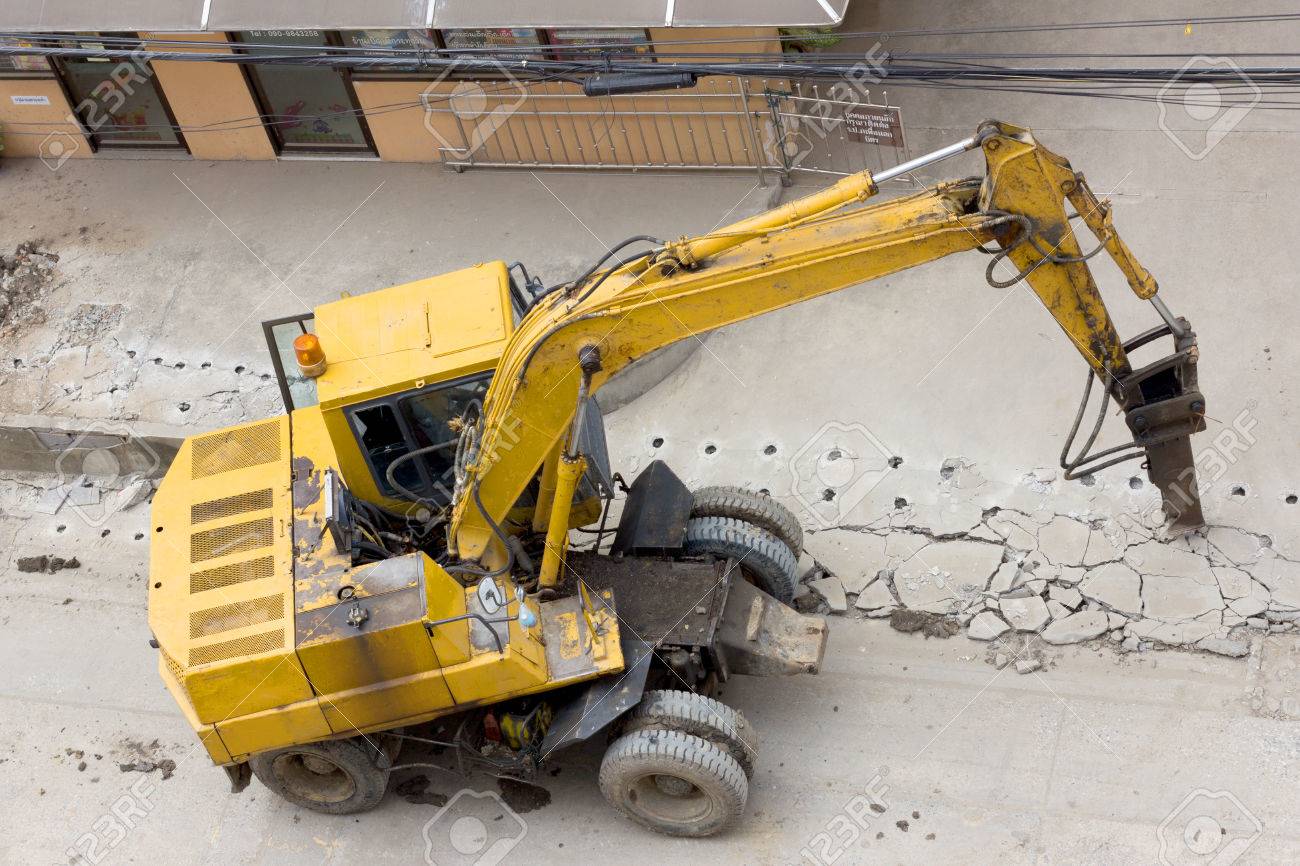 コンクリート破砕機、油圧破砕ハンマー解体鉄筋コンクリート道の写真素材・画像素材 Image 47587965。